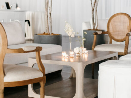 Take Christine and Eric’s late summer wedding at the Estate at Cherokee Dock for example. They transformed the modern style of the event center into an organic lounge space for their guests!